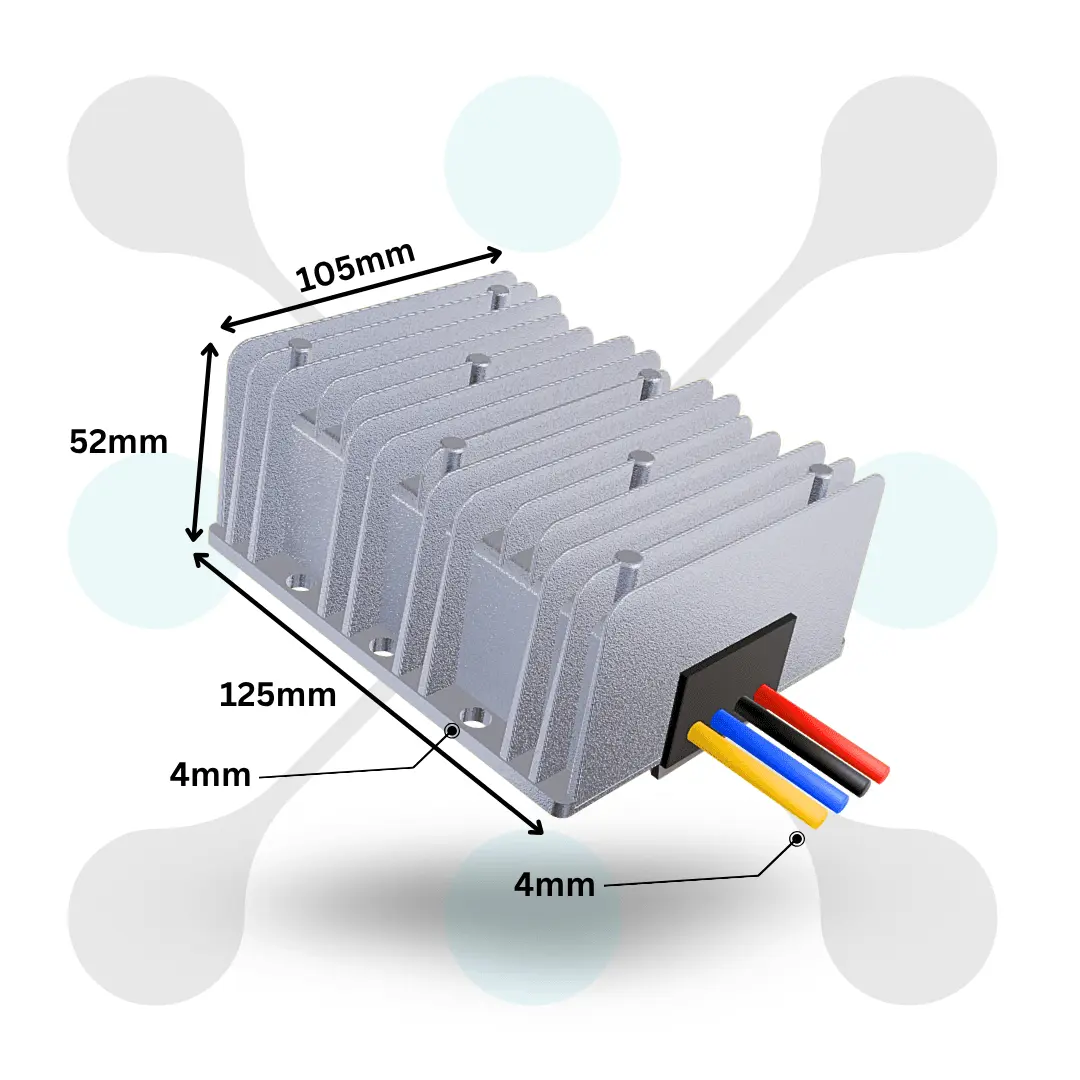 Introducing Roboway G-energy DC 90V 110V to 12V 30A 360W Dc-Dc Converter at best price in India with Roboway. This 110V to 12V 30A 360W buck converter smoothly step down high input voltage to a reliable 12V output. Its IP68 waterproof rating ensure exceptional durability in harsh environment. This 110V to 12V 30A step down converter deliver a robust 30A output, perfect for demanding electronic application.