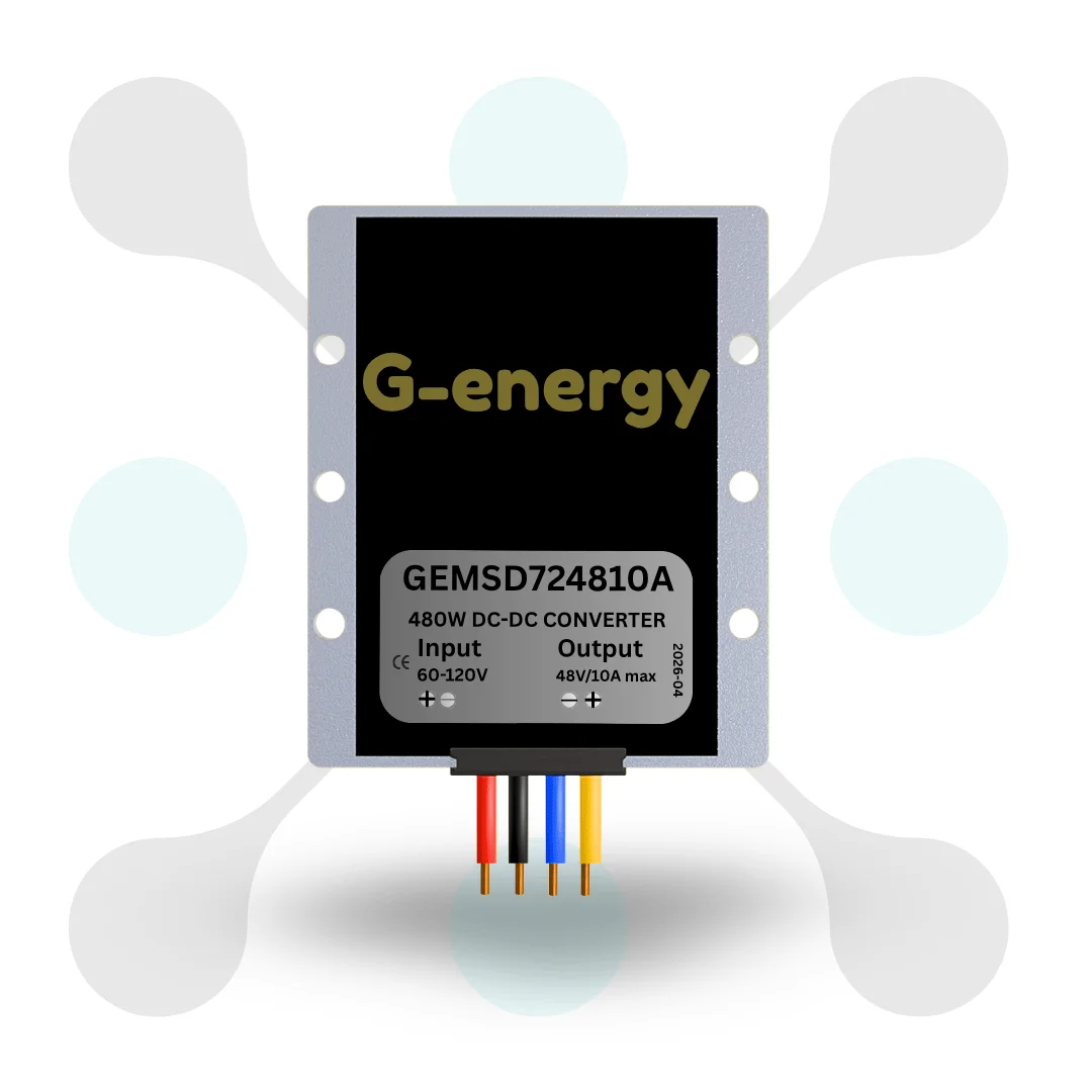 Introducing g-energy GEMSD724810A 72v 90v to 48v 10a 480w dc to dc converter Ip68 buck converter module at best price in India with Roboway. This buck converter work on input voltage range from 60v to 120v and convert it to a fix 48v dc. It also provide a high dc current up to 10a and 480w max dc power. It also come with 3 month exchange warranty for its quality assurance.